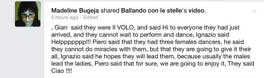 translation November 29, 2014 545 × 162 Il Volo Professional ~~ Ballando con le Stelle — Dancing With the Stars Madeline Bugeja translation